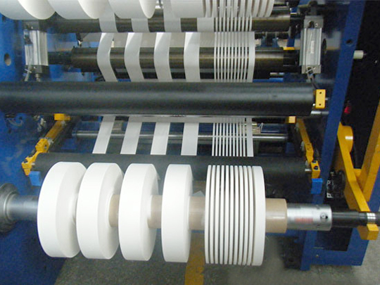 分切機是一種將寬幅紙張、云母帶或薄膜分切成多條窄幅材料的機械設備,常用于造紙機械、電線電纜云母帶及印刷包裝機械。分切機主要的運用于:云母帶、